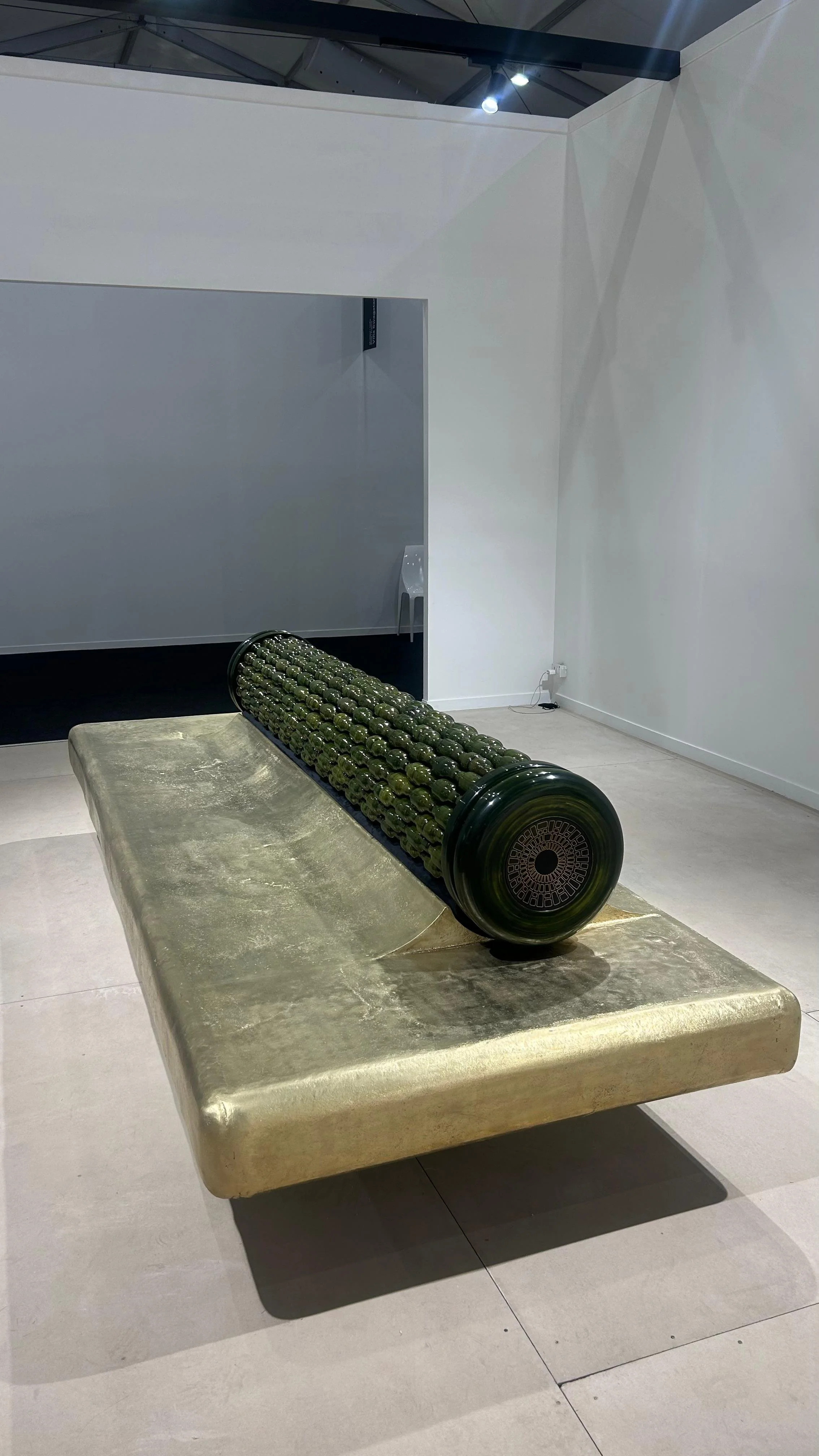 Another booth that landed with real clarity was Æquō in collaboration with Villa Swagatam, presenting work by Marie Gastini. The collaboration is rooted in a residency model—Villa Swagatam and Æquō selected Gastini to engage Indian material cultures, with outcomes presented at India Art Fair.