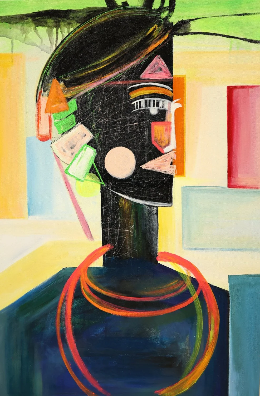 Parnika Mittal (b. 1993, based in Delhi/London) creates vivid, emotionally charged paintings shaped by colour, memory and fractured composition. Her practice explores selfhood, displacement and movement through forms that dissolve into abstraction, where recognisable figures and spaces give way to shifting patterns, textures and traces of feeling. Drawing on personal journals, lived transitions and the instability of home, her work holds memory, loss and identity in states of continual transformation.